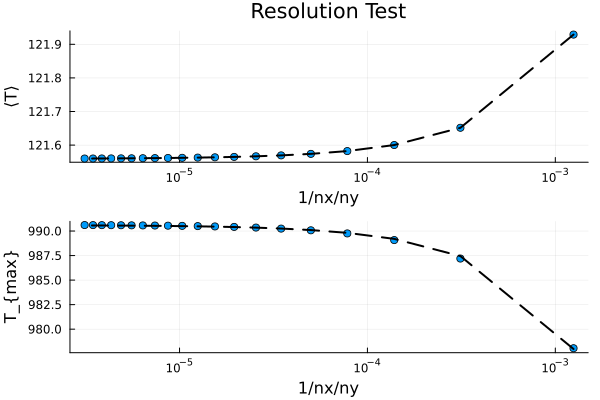 \[a = \frac{1}{\Delta{x^2}}, b = \frac{1}{\Delta{y^2}}, \textrm{and} \ c = -a\left(k_{x;i+1,j}+k_{x;i,j}\right) - b\left(k_{y;i,j+1}+k_{y;i,j}\right).\]For more details on how this is implemented see PoissonSolvers.jl.